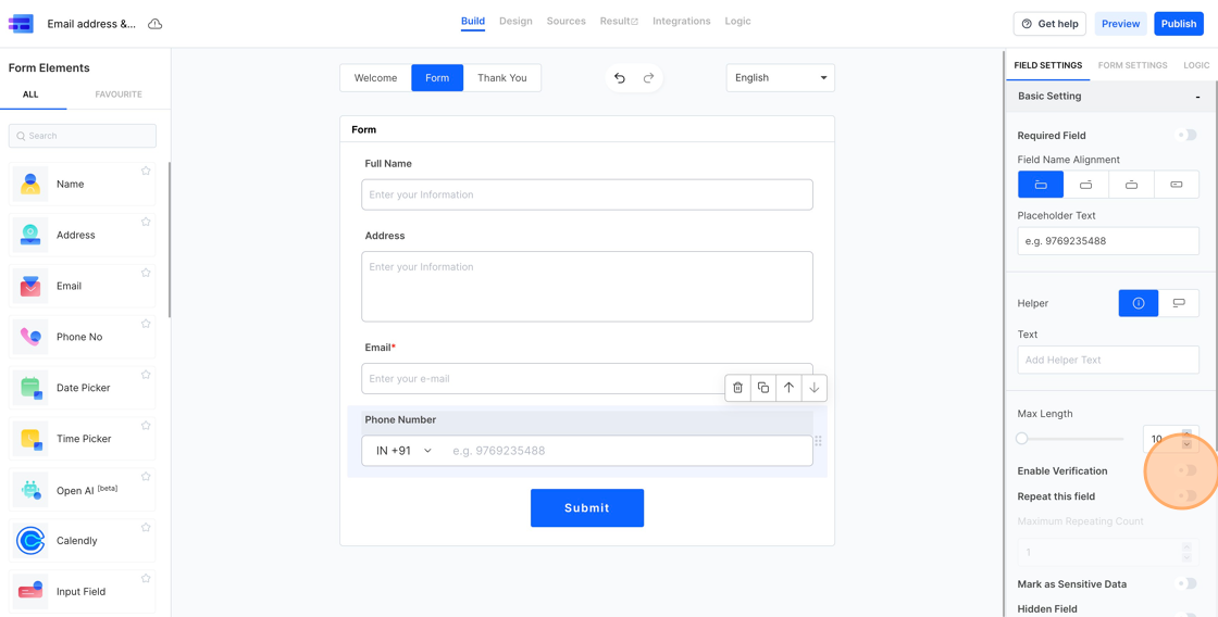 Verify Email address and Phone Number in MakeForms