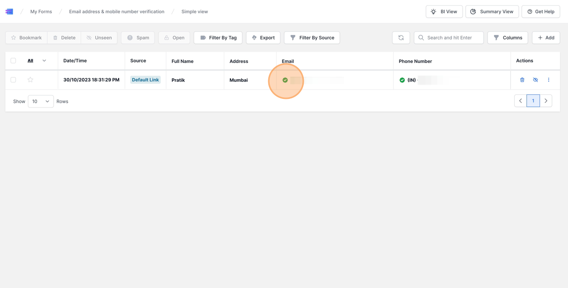 9. On this page, you’ll notice a green tick mark next to the email address and phone number. This symbolizes successful verification. Utilizing MakeForms’ email and phone number verification processes allows you to confirm user credentials and ensures you receive genuine and authenticated leads.